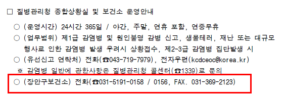 [보건소]질병관리청 종합상황실 및 보건소 제1급 감염병 등 24시간 접수 안내