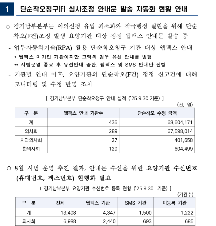 단순착오(F건)조정 발생 요양기관 대상 정정 웹 팩스 안내문을 발송 하고 있다고 합니다.