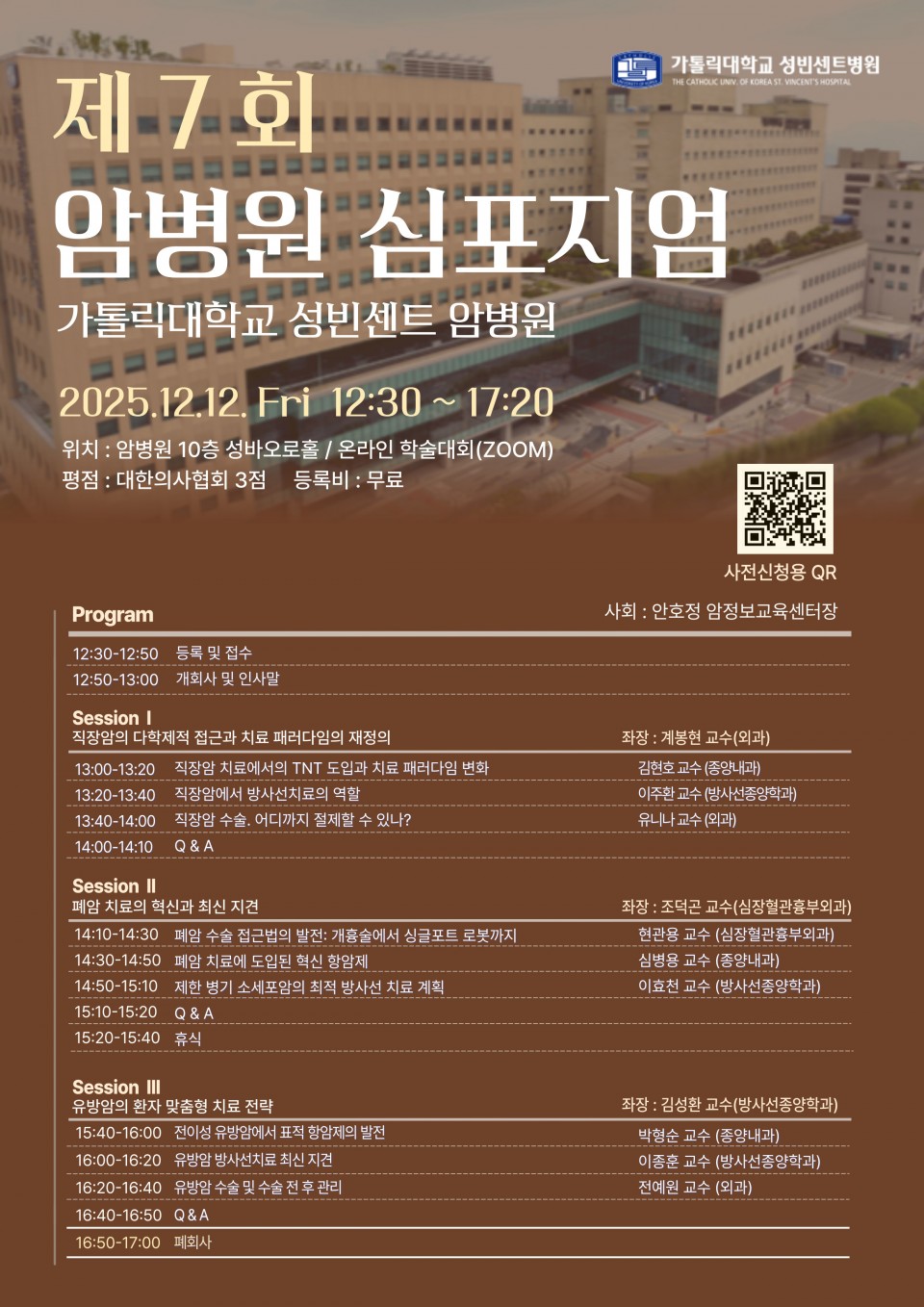 [심포지엄]가톨릭대학교성빈센트병원 암병원 온라인심포지엄(12/12)