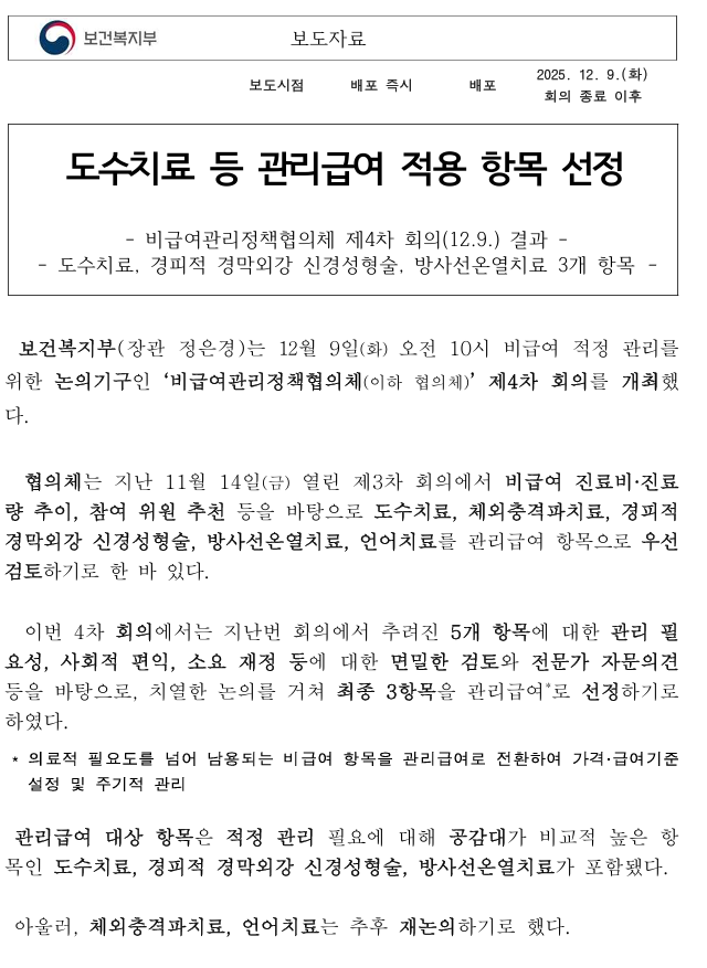 [복지부] 도수치료 등 관리급여 적용 항목 선정