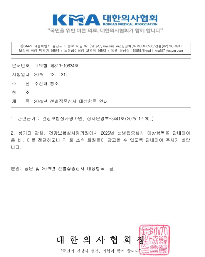 - 대한의사협회, 대의협 제813-10634호(2025. 12. 29. 시행)
