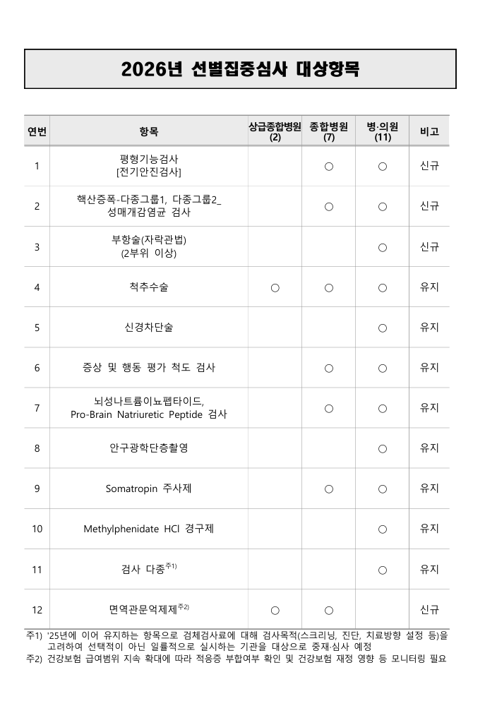 2026년 선별집중심사 대상항목에 대한 내용을 안내합니다