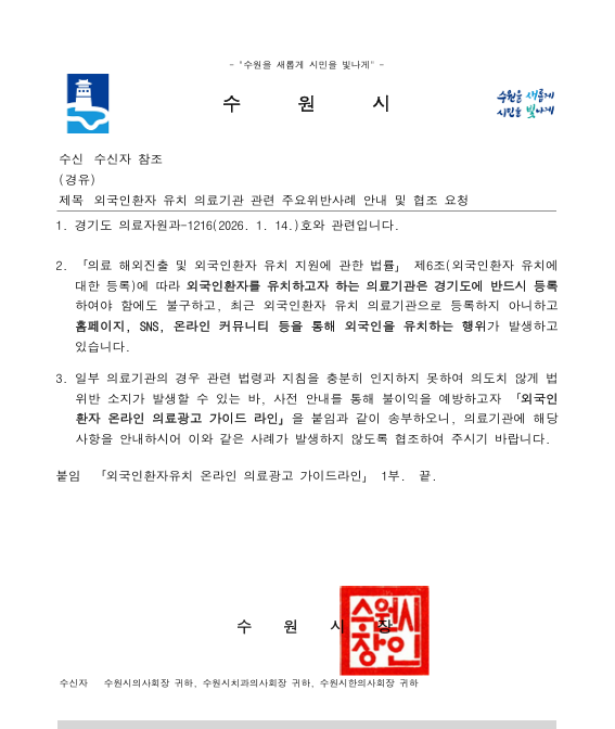 [보건소] 외국인환자 유치 의료기관 관련 주요위반사례 안내