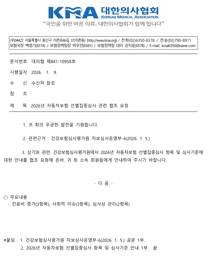 [의협]26년 자동차보험 선별집중심사 항목 안내