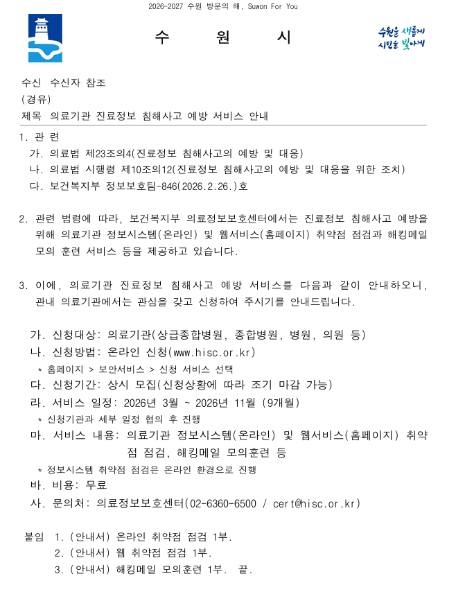 [보건소]의료기관 진료정보 침해사고 예방 서비스 안