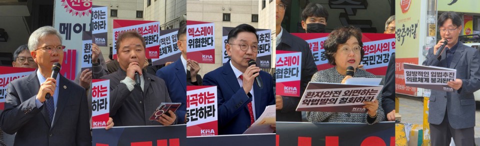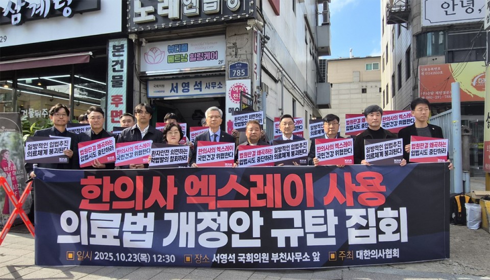 대한의사협회(회장 김택우)는 23일, 더불어민주당 서영석 국회의원이 대표발의한 ‘한의사 엑스레이(X-ray) 사용 의료법 개정안’의 즉각적인 철회를 촉구하기 위해 서영석 의원 부천사무소 앞에서 규탄 집회를 개최했다.