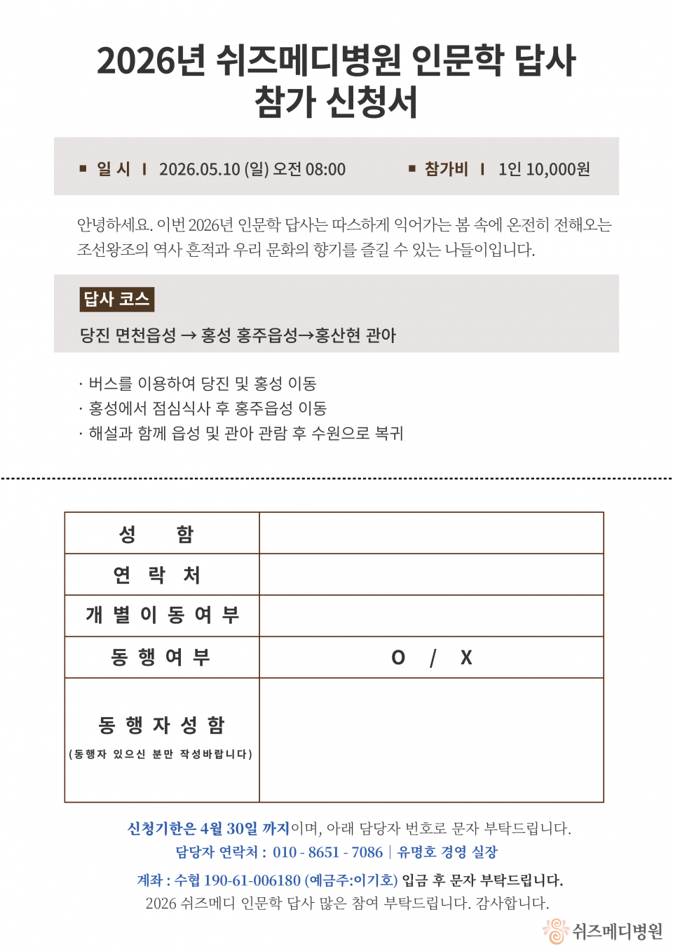 쉬즈메디2026 인문학 답사 안내(5월10일)